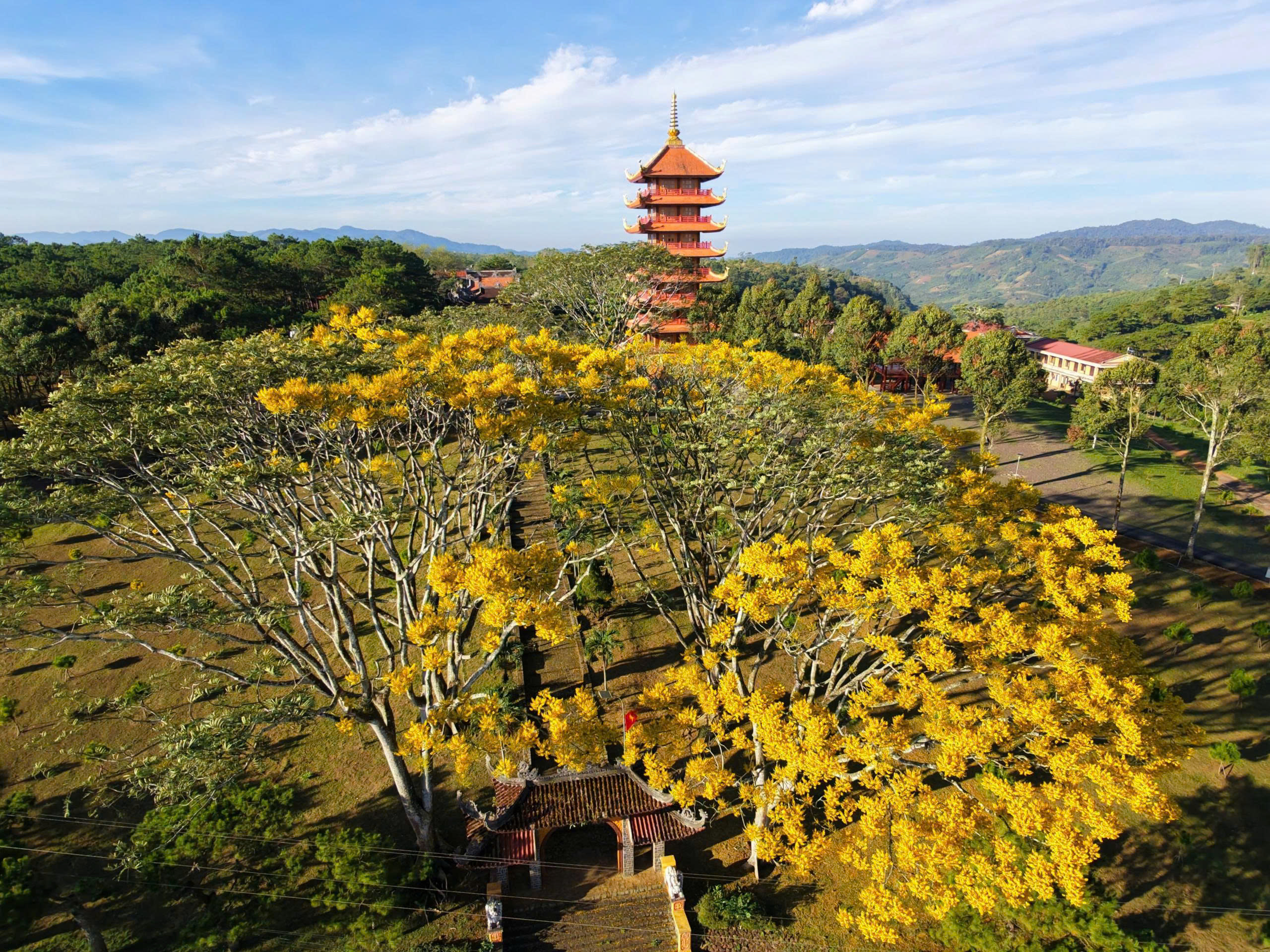 Hoa phượng vàng nở rộ tại Tu viện Bát Nhã, phường 2 Bảo Lộc, tỉnh Lâm Đồng.