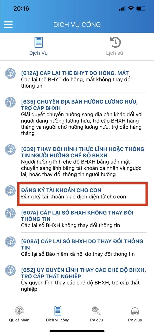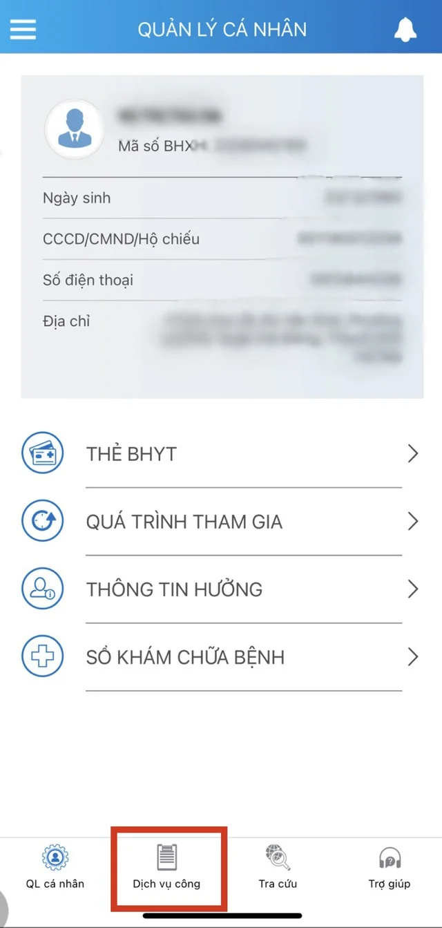 Bước 2: Tại giao diện chính, chọn “Dịch vụ công”.