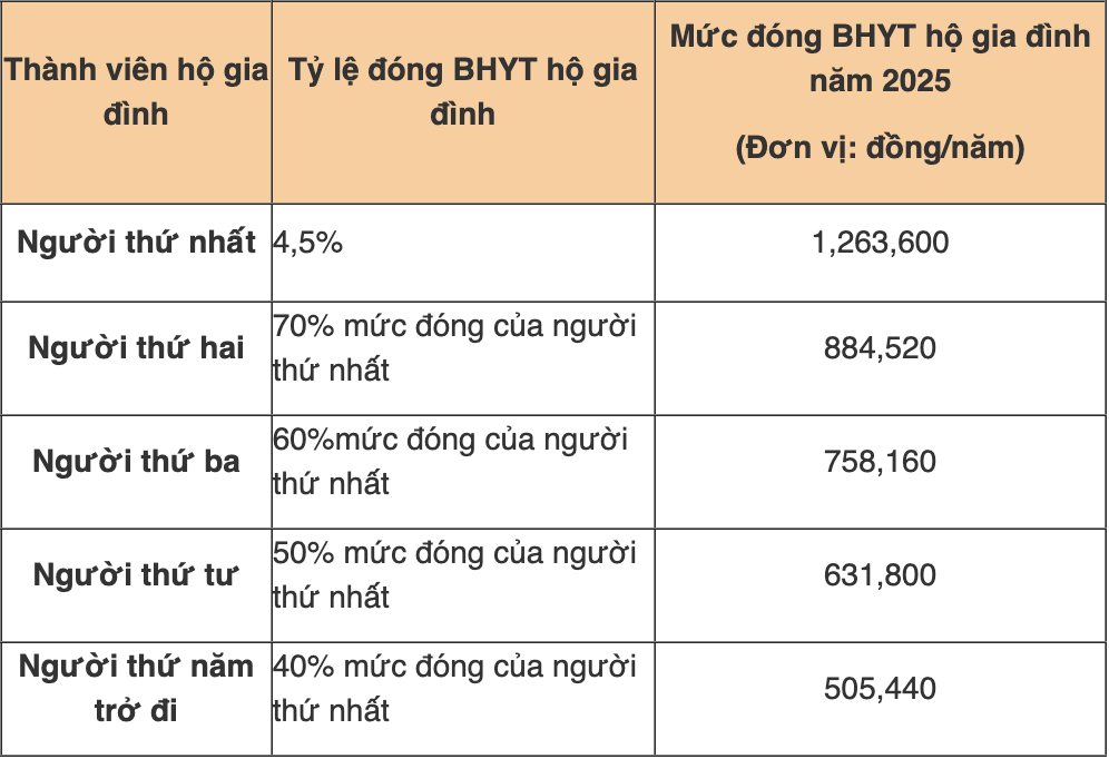 Mức đóng BHYT hộ gia đình mới nhất năm 2025